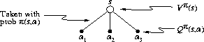 The value of a state depends on the the value of the actions possible in that state and on how likely each action is to be taken under the current policy. We can think of this in terms of a small backup diagram rooted at the state and considering each possible action: