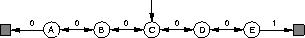 C,0,B,0,C,0,D,0,E,1. Because this task is undiscounted and episodic, the