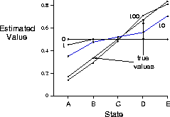 or the extreme right. If they terminate on the right a reward of +1 occurs,