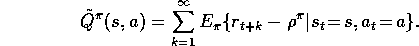 and the value of a state-action pair is similarly the transient difference in reward when starting in that state and taking that action: