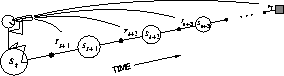 The approach that we have been taking so far is what we call the theoretical, or forward, view of a learning algorithm. For each state visited, we look forward in time to all the future rewards and decide how best to combine them. We might imagine ourselves riding the stream of states, looking forward from each state to determine its update, as suggested by Figure 7.5. After looking forward from and updating one state, we move onto the next and never have to work with the preceding state again. Future states, on the other hand, are viewed and processed repeatedly, once from each vantage point preceding them.