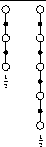 A backup that averages simpler component backups in this way is called a complex backup. The backup diagram for a complex backup consists of the backup diagrams for each of the component backups with a horizontal line above them and the weighting fractions below. For example, the complex backup mentioned above, mixing half of a 2-step backup and half of a 4-step backup, has the diagram: