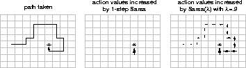 of eligibility traces. In one episode, 1-step methods strengthen only the last