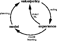 Within a planning agent, there are at least two roles for real experience: it can be used to improve the model (to make it more accurately match the real environment) and it can be used to directly improve the value function and policy using the kinds of reinforcement learning methods we have discussed in previous chapters. The former we call model learning, and the latter we call direct reinforcement learning (direct RL). The possible relationships between experience, model, values and policy are summarized in Figure 9.2. Each arrow shows a relationship of influence and presumed improvement. Note how experience can improve value and policy functions either directly or indirectly via the model. It is the latter, which is sometimes called indirect reinforcement learning, that is involved in planning.