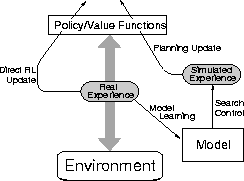 Figure 9.1. The direct RL method is 1-step tabular Q-learning. The