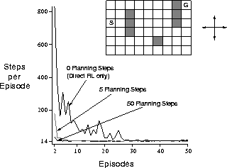 episode. Without planning (N=0), each episode adds only one additional step to the